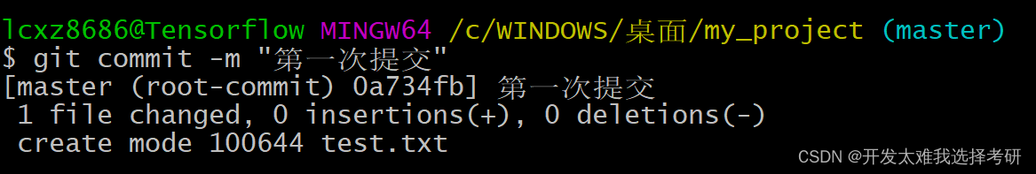 5.使用commit命令,提交到本地历史仓库,输入:git commit -m "描述"