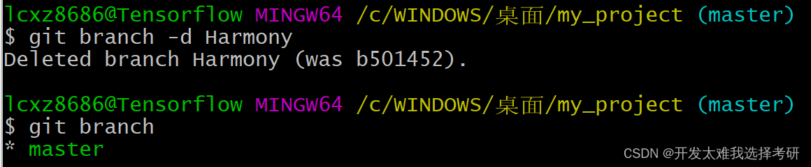 (4)git branch -d "分支名" : 删除分支
