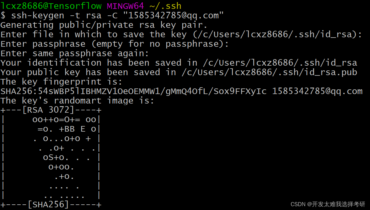 ssh-keygen -t rsa -C "邮箱"