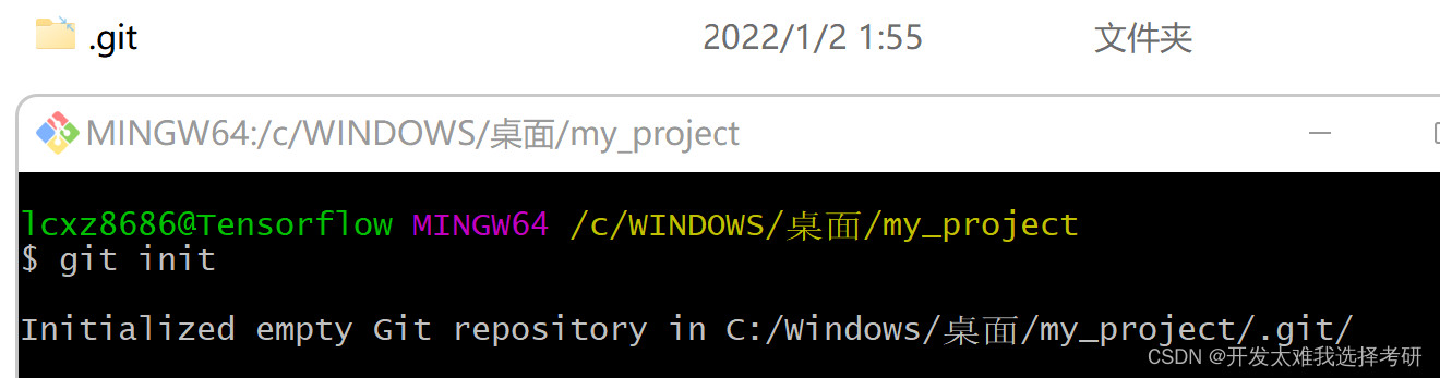2.进入my_project文件夹,打开git bash,输入:git init进行初始化