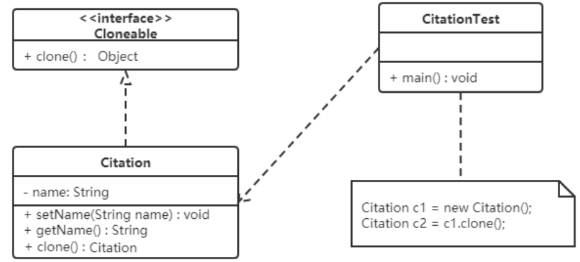 Java中的Object类中提供了 clone() 方法来实现浅克隆。 Cloneable 接口是上面的类图中的抽象原型类,而实现了Cloneable接口的子实现类就是具体的原型类。