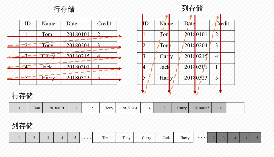 在OLTP场景,更多的基于实体的维护和查询,但是在OLAP场景,则是更多地从实体特征角度进行数据处理(统计),所以在OLAP的场景下,如果还是使用行式存储,会导致大量的无谓的遍历,比如想要对某个列进行所有数据的统计,因为是行式存储,需要遍历所有的实体的所有的属性;如果列式存储,则只需要按照列进行查询即可,因为列式存储是以列一个物理存储单元,所以遍历只要遍历相应列的物理存储文件即可。