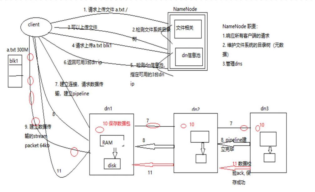 - 确认队列:DataNode 收到数据后发送确认,管线的 DataNode 所有的确认组成一个确认队列。所有 DataNode 都确认,管线数据包删除;
