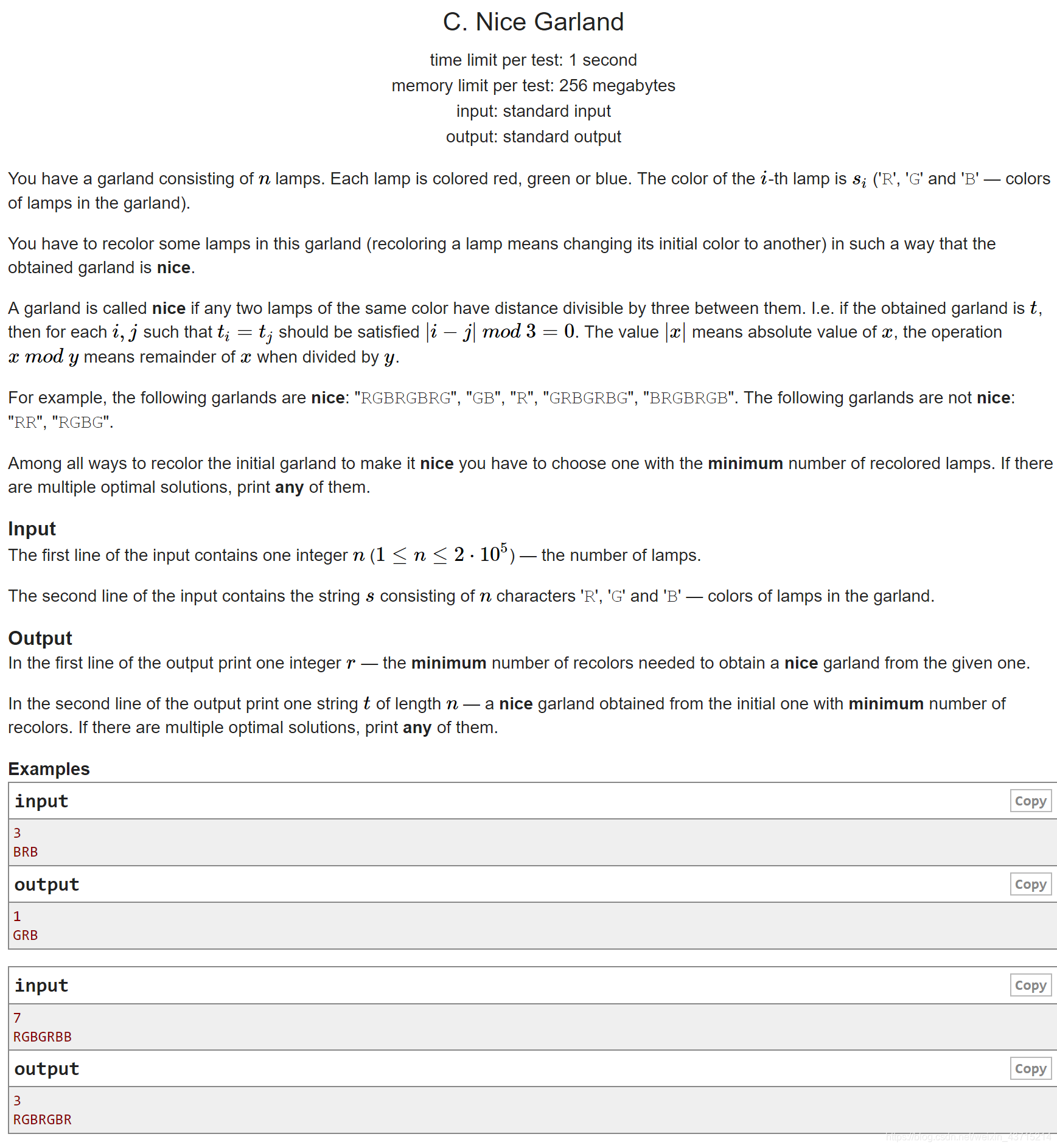 string str[6]={"GRB","GBR","RGB","RBG","BGR","BRG"}; //一共6种排列方式