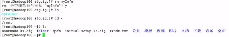 cd - :返回之前的文件夹,即从哪个文件夹跳过来回哪个去