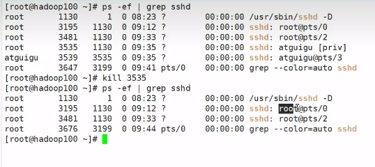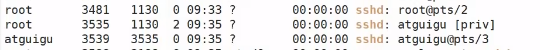 第一个sshd是后台守护进程,第二个sshd是虚拟机远程登陆