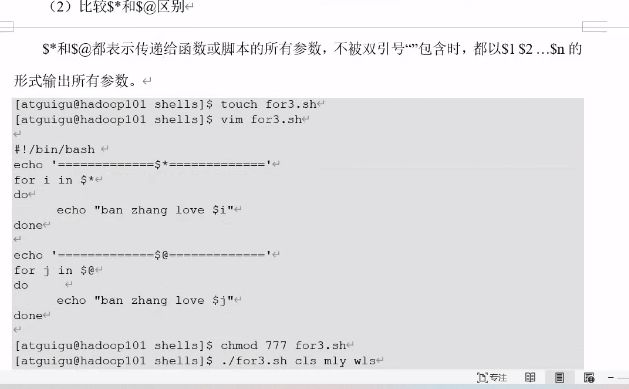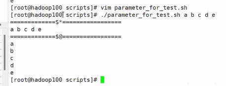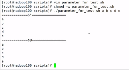 加引号就有差别了,“$*”输出结果只有一个元素,而"$@"分别输出