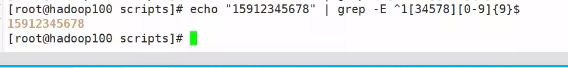 支持扩展的正则表达式:{9}表示重复九次: