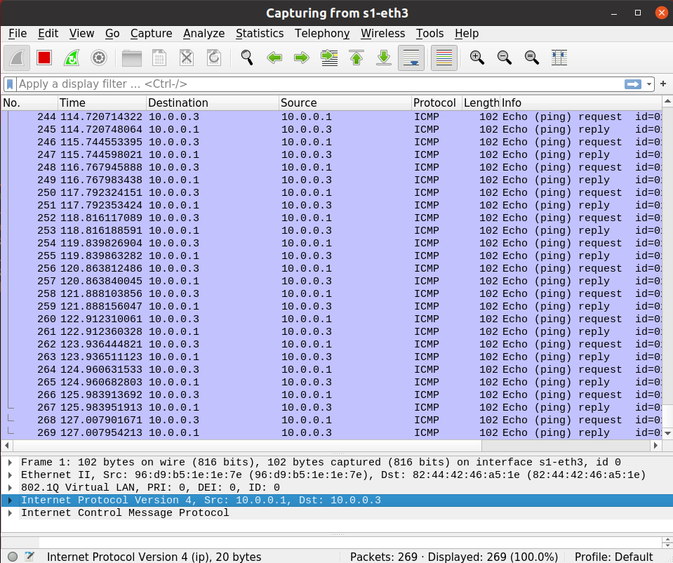 h1.cmdPrint( 'ping -c 3 ' + h3.IP() ) # h1 ping h3 ok