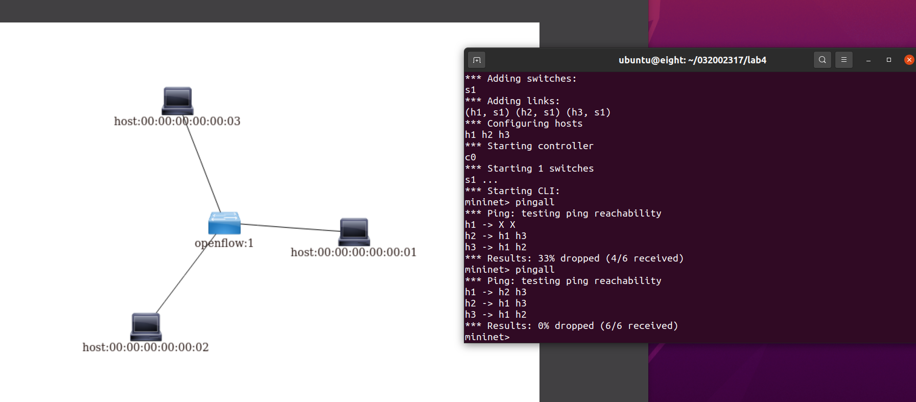 - 利用Mininet平台搭建下图所示网络拓扑,并连接OpenDaylight控制器;