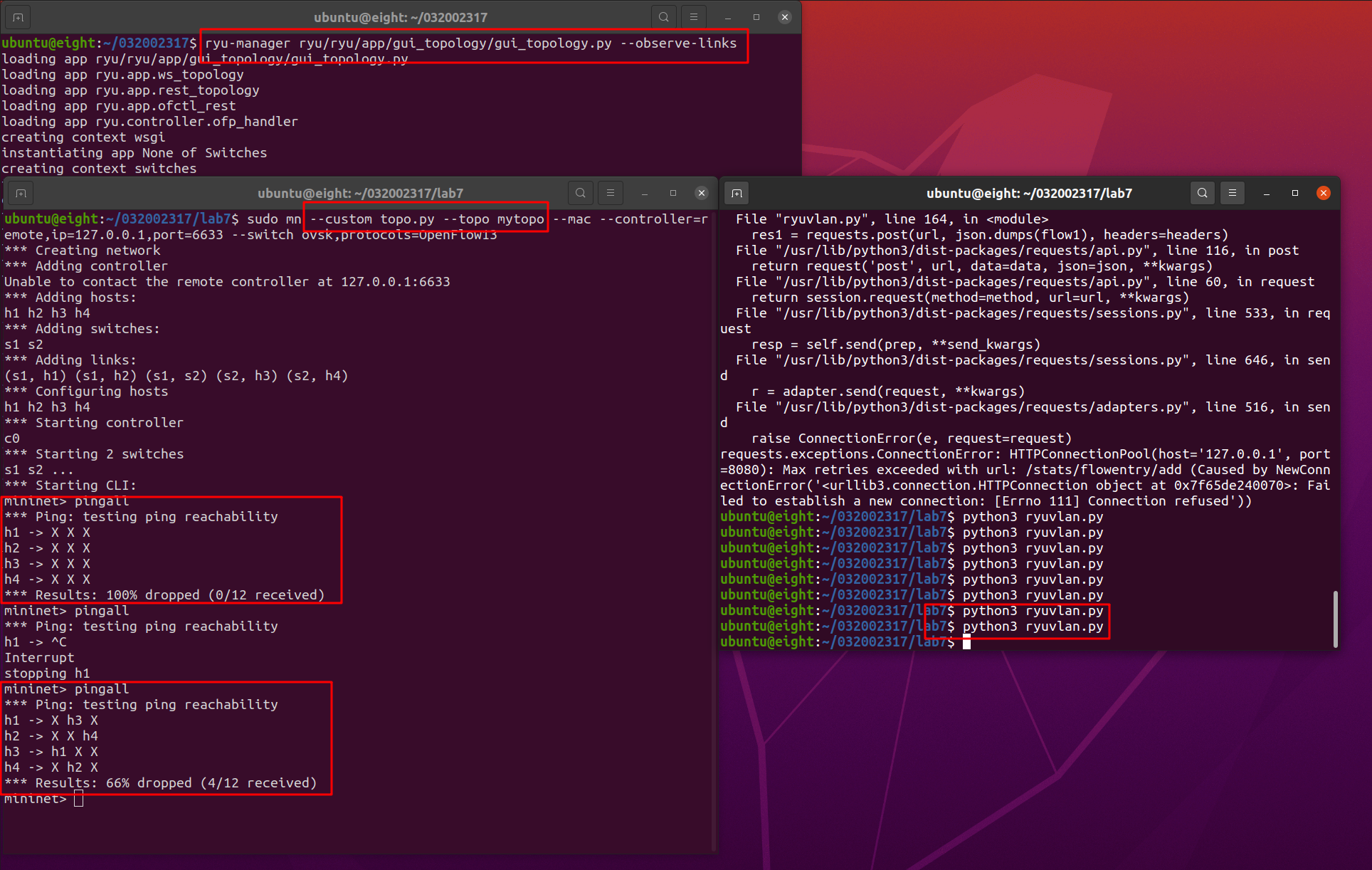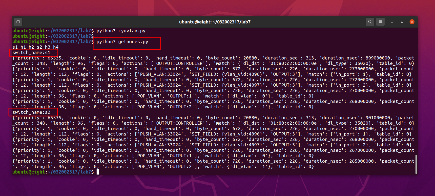 (2) 参考Ryu REST API的文档,基于VLAN实验的网络拓扑,编程实现相同的VLAN配置。