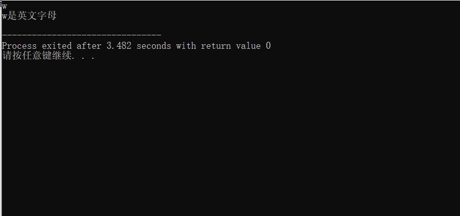 int main(int argc, char** argv) { char x; x=getchar(); if(x>='0'&&x<='9') printf("%c是数字字符\n",x); else if(x>='A'&&x<='z') printf("%c是英文字母\n",x); else printf("%c是其他字符\n",x); return 0; }