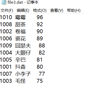 // 将排序后的数组st中数据输出到屏幕,同时,也写入文件file3.dat