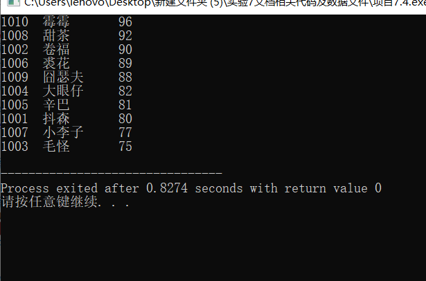 // 调用函数sort()对数组st中数据,按分数由高到低排序