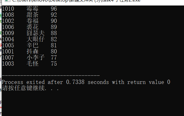 // 将排序后的数组st中数据输出到屏幕