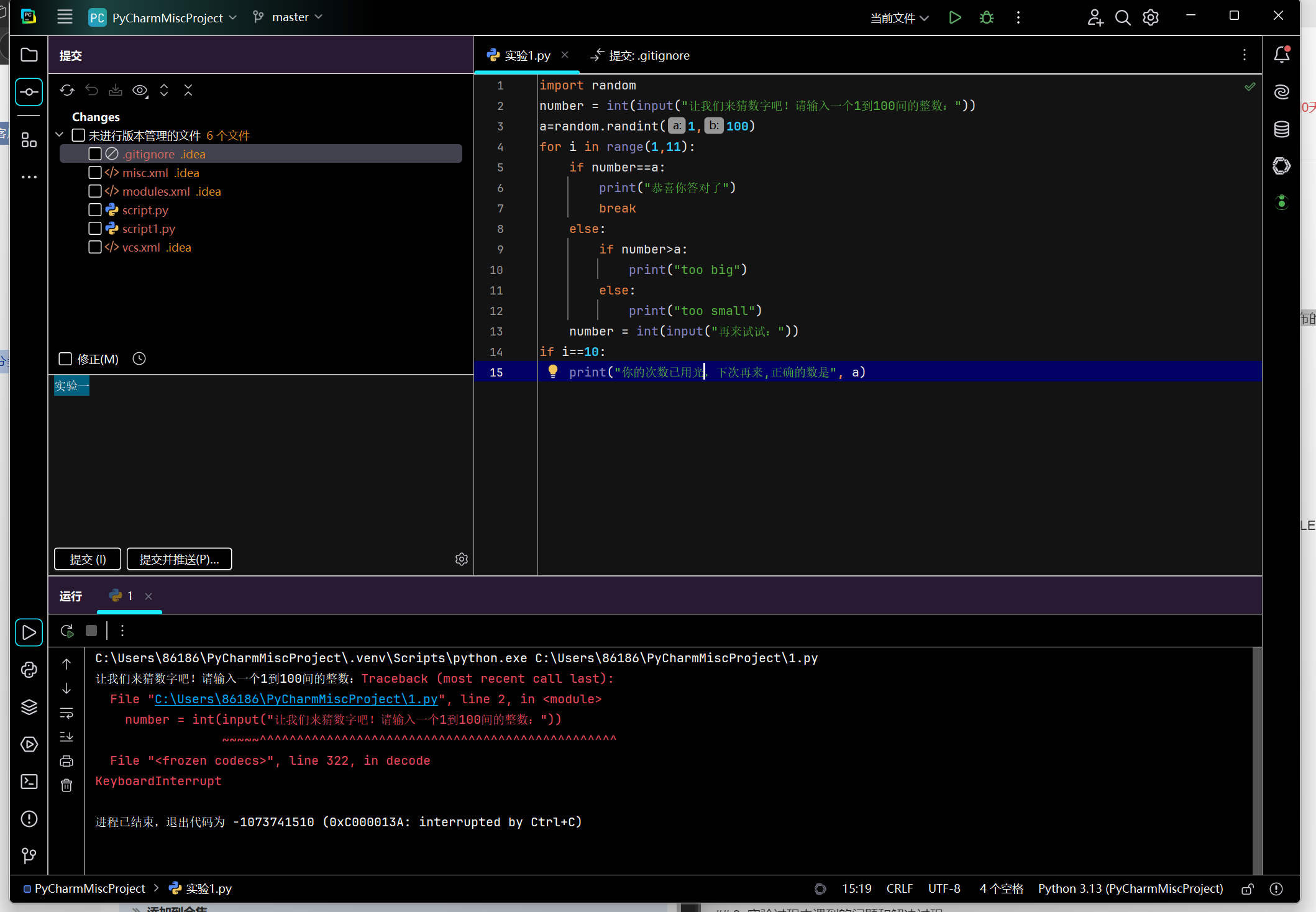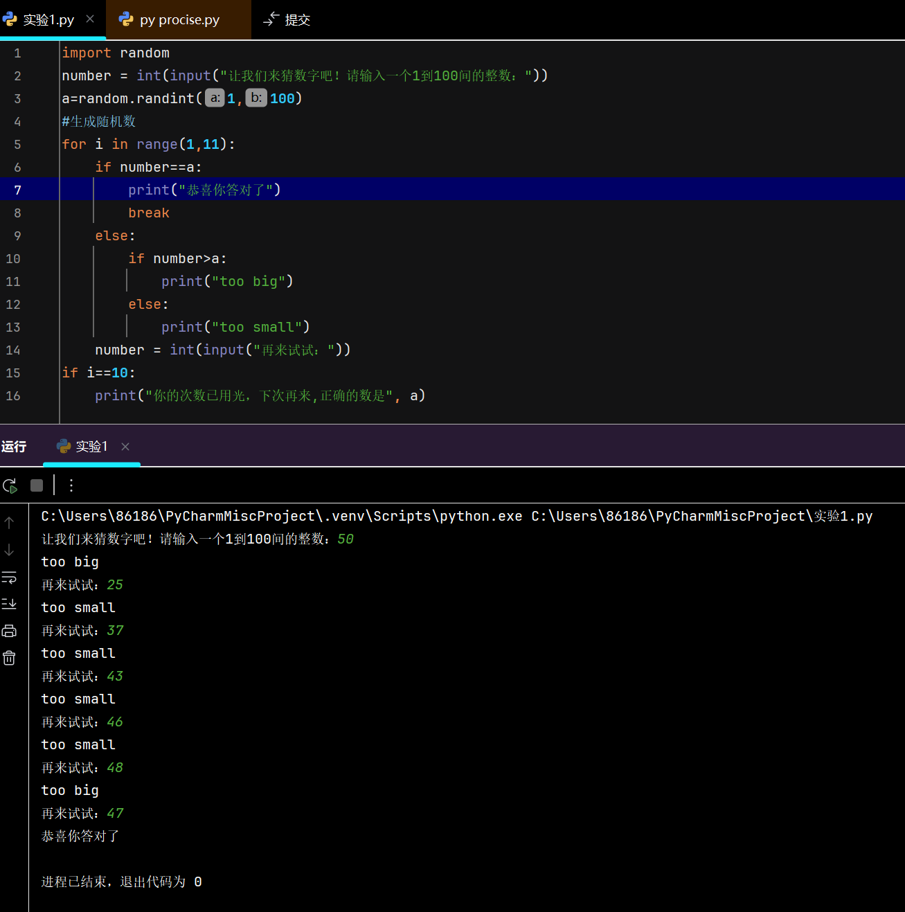 (3)编写程序,练习变量和类型、字符串、对象、缩进和注释等;(编写一个猜数字或者剪刀石头布的游戏)