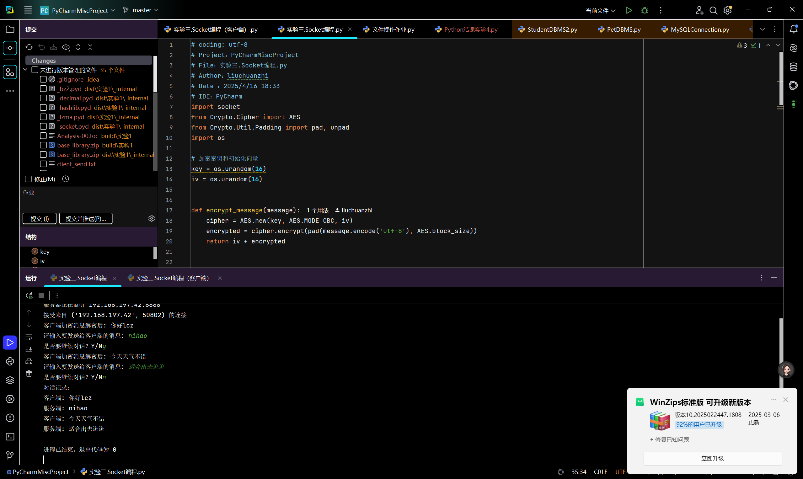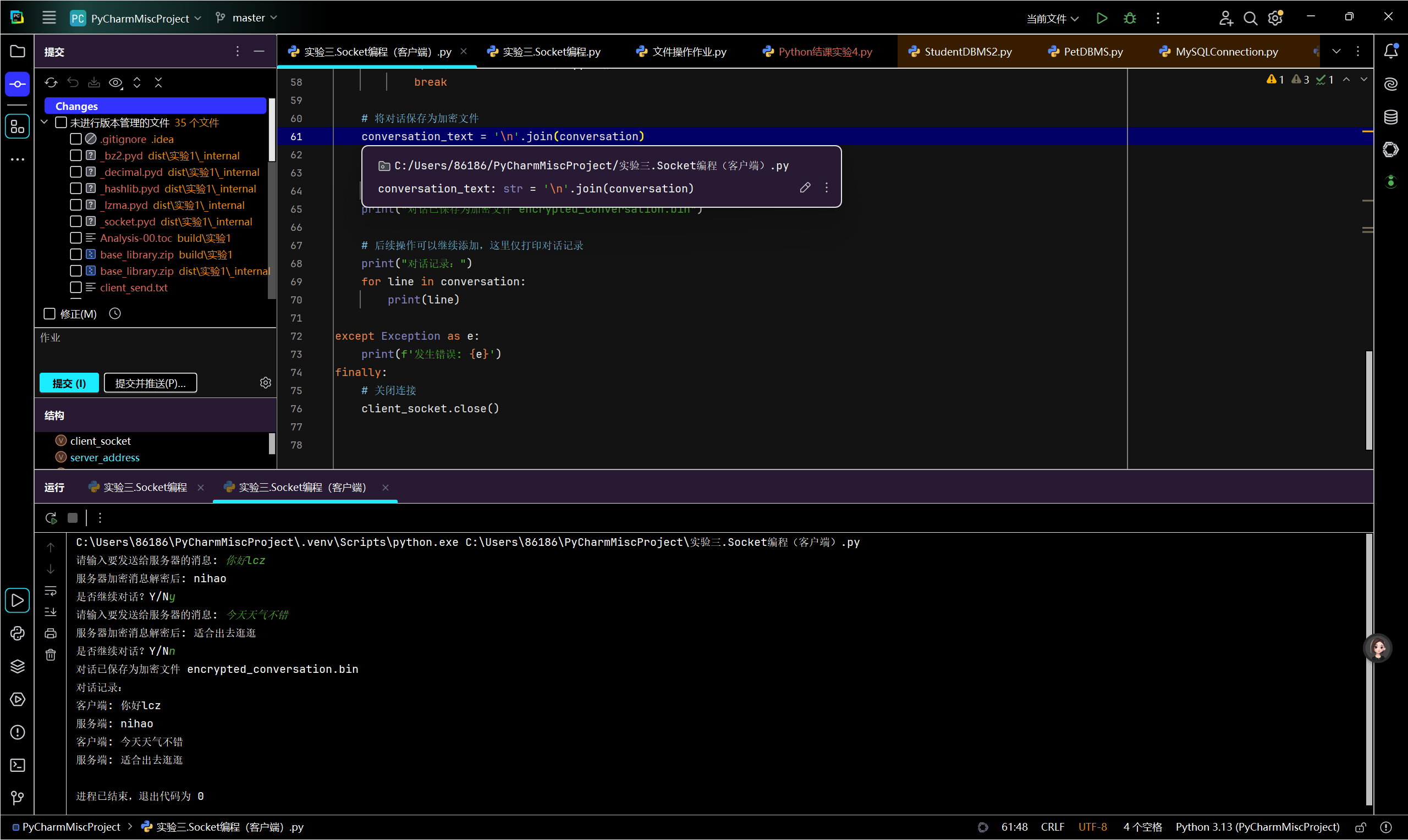 本次实验初步接触了socket网络编程,实现了简单的服务端/客户端的建立并完成交互通信,为我打开了探索Python编程的又一扇大门。