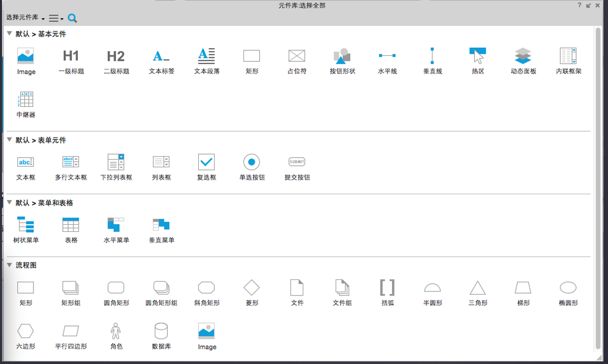 常用的组件有:图片、文本块、矩形、占位符、形状按钮、图片映射区域、动态面板等,在交互操作中使用动态面板的最多。将组件单机选中拖入工作区域后,可以对已添加的组件进行颜色、边框等属性设计。