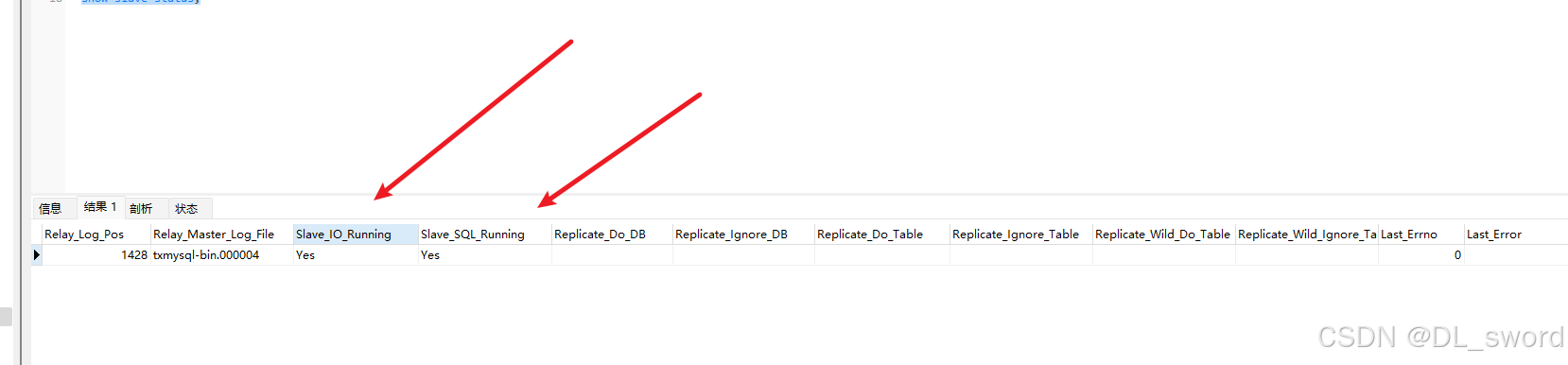 如果出现异常,查看Last Error和Last_IO_Error 两个字段内的异常错误信息