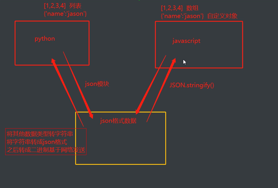 反序列化:将json格式字符串转成当前语言对应的某个数据类型