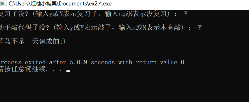 printf("复习了没? (输入y或Y表示复习了,输入n或N表示没复习) : ");