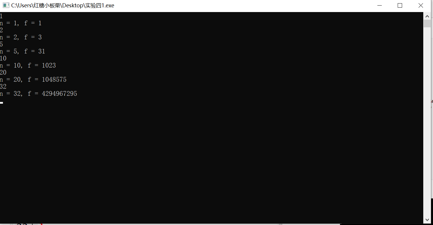 printf("n = %d, f = %lld\n", n, f);