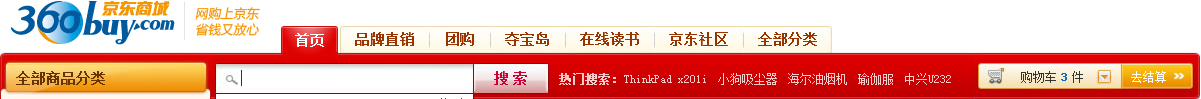 京东商城的导航栏在几家大的购物网站中是比较好的,特别是右侧购物车的设计是个小亮点,鼠标放上去就可以自动下拉出层,可以不用点击进去就可以看到到底买了什么商品。 至于其他的收款什么的功能购物网站都大同小异,就不在赘述了。我主要想说的是订单和服务的问题。