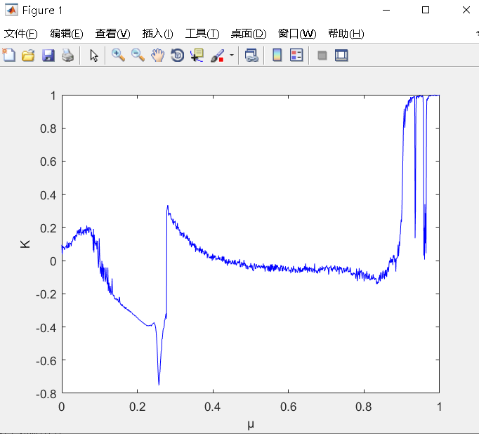 xlabel('μ');ylabel('K');