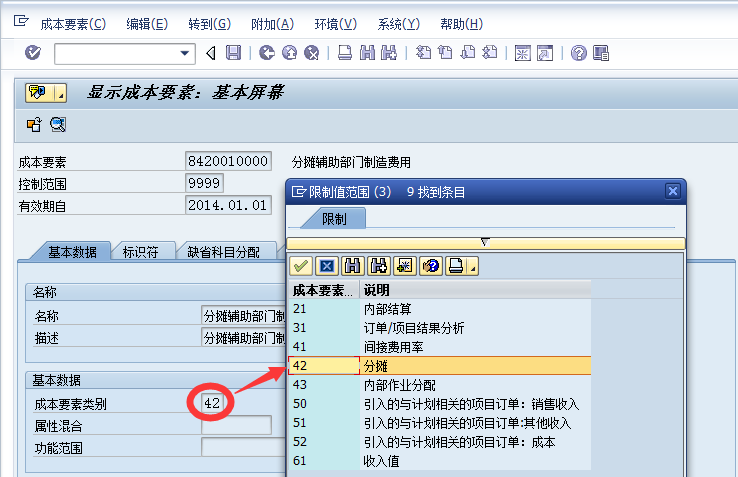 42分摊,这类成本要素用于成本对象之间的费用分摊。例如,将成本中心A的费用分摊到成本中心B,可以手工录入CO凭证,也可通过KSU5执行费用分摊循环。