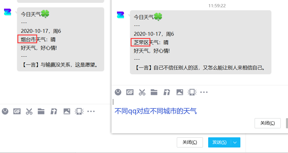 3. 可不可以同时给多个用户发送多地天气呢?可以的,按照下图添加城市信息就可以实现啦!