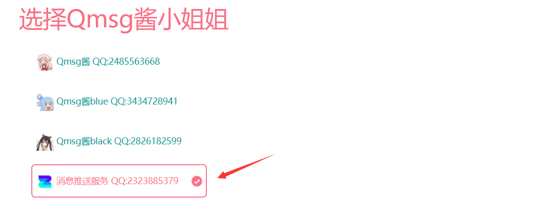 - 选择qmsg酱时一定要选择 `消息推送服务`: