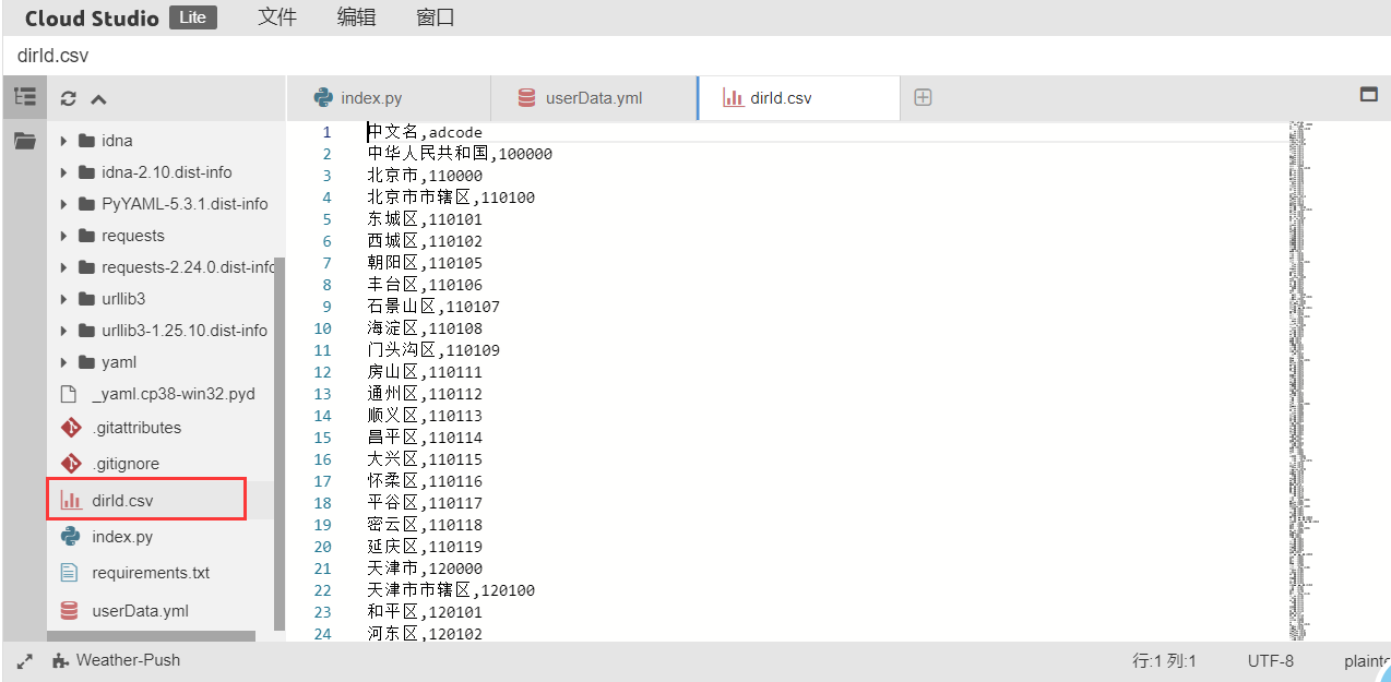 - 左侧文件树中找到 `dirId.csv` 文件,双击打开: