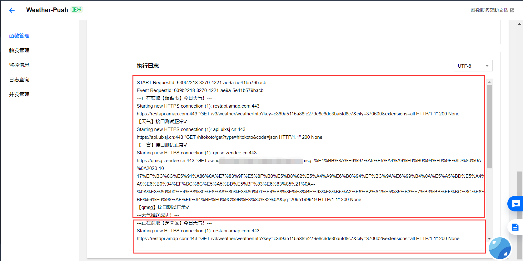 1. 免费,腾讯云函数每月100万次免费调用额度,本项目每天只调用一次: