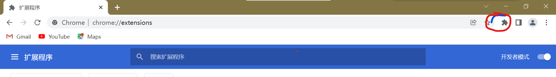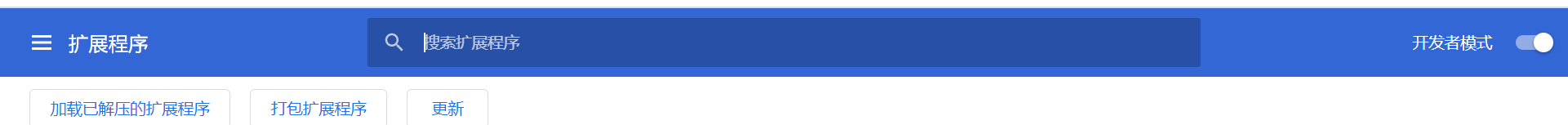 2、谷歌搜索框输入:chromd://extensions,打开开发者模式按钮,点击”加载已解压的扩展程序“