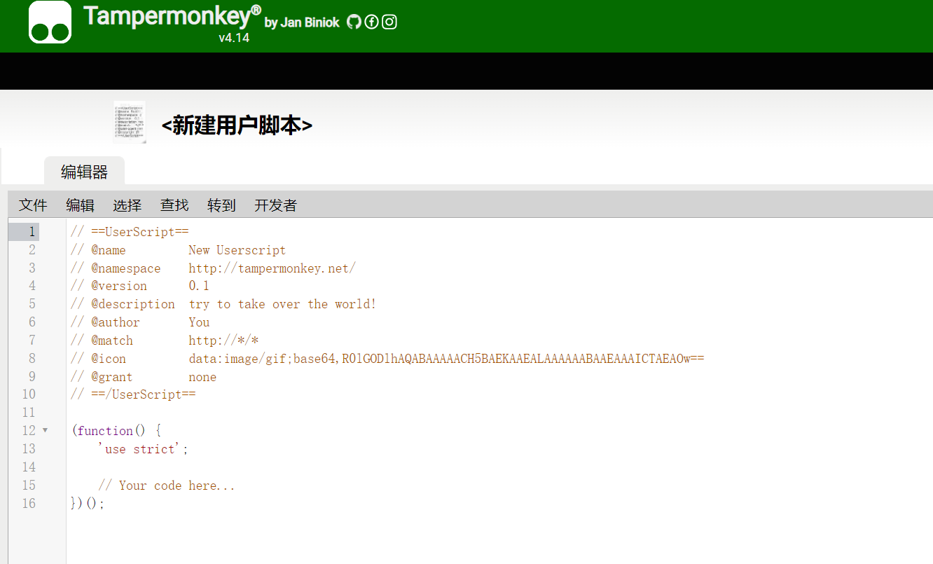 4.添加脚本,将原来的脚本全部删除,将下载的脚本(网盘直链下载助手.user.js)复制粘贴进去,ctrl +s 保存