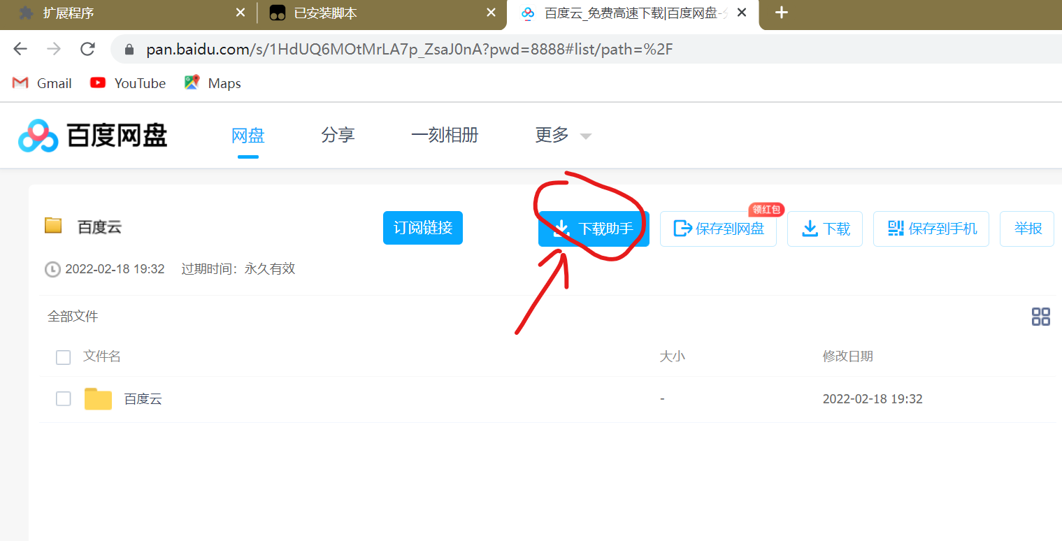 5.直接搜索想要下载的链接,登录百度网盘,看到下载助手并点击,选择API下载