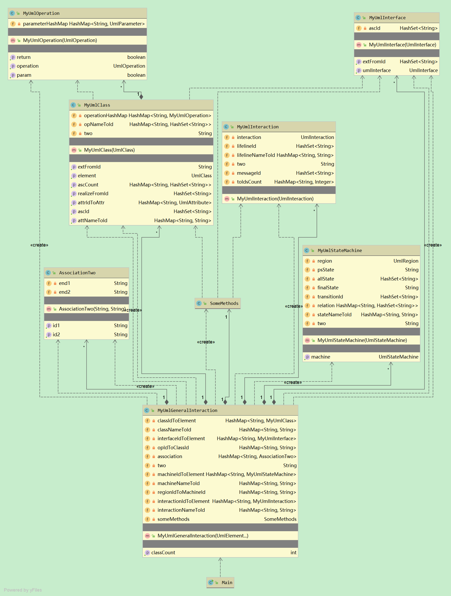 第二次作业增加了对顺序图和状态图的解析。其中一些没有用到的元素我就没有存。因为方法太多超了500行就单独建了一个方法类存部分方法。