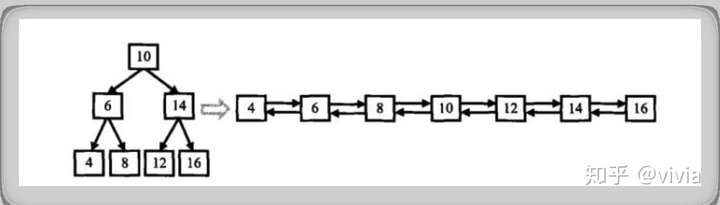 在二叉搜索树中,左子节点小于父节点,右子节点大于父节点。如果要转为双向链表,要对二叉树进行中序遍历,遍历结果就是链表中节点的顺序。将二叉树分成三部分,根节点、左子树、右子树,将左子树的最大值与根节点连接,右子树的最小值与二叉树连接。