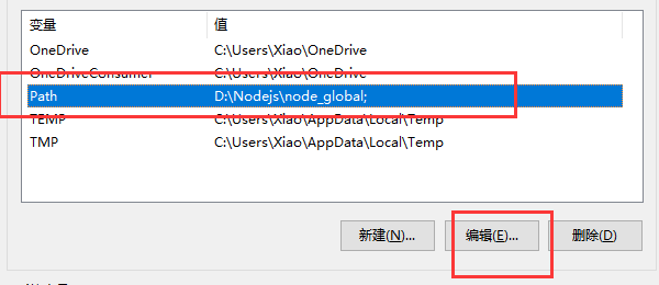 b. 在用户变量Path中 增加D:\Nodejs\node_global