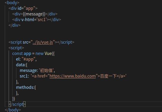 2. v-html: 加入该属性后,可以直接读取数据类型为标签<></>样式的数据,并将标签按照html显示