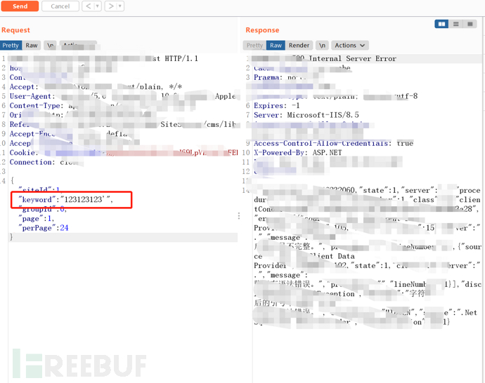站点使用vue+aspx+iis8.5搭建。站点登录框有版本号且url栏中存在siteserver字样,因此怀疑是cms搭建的,但未见过该cms,使用谷歌搜索发现该站点是用siteserver cms搭建的,版本为最新,且网上提供的漏洞在此无法使用,在登录框尝试过注入+弱口令+验证码绕过+未授权之类等等手段之后无果,由于具有测试的账号,干脆因此直接登录站点进行测试。