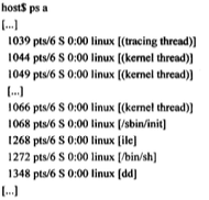 UML(不是你们说的那个UML,这里的UML是User Mode Linux,用户模式Linux,一张非常特殊的虚拟机)支持从自身内运行Linux内核,客户机操作系统运行在主机内核之上,也就是在用户空间之上,有点类似于上面VMWare那个图。UML的本质是一个调整过的内核,特殊性在于能够在用户空间中运行。用UML当做蜜罐环境有些好处,但是UML还是尽量别用在蜜罐上面,默认情况下,UML在TT(不是奥迪TT,是Tracing Thread追踪线程模式)模式下运行,一个主线程函数ptrace()追踪客户机操作系统中每一个启动的新进程,在主机操作系统上,借助ps命令可以去查看:
