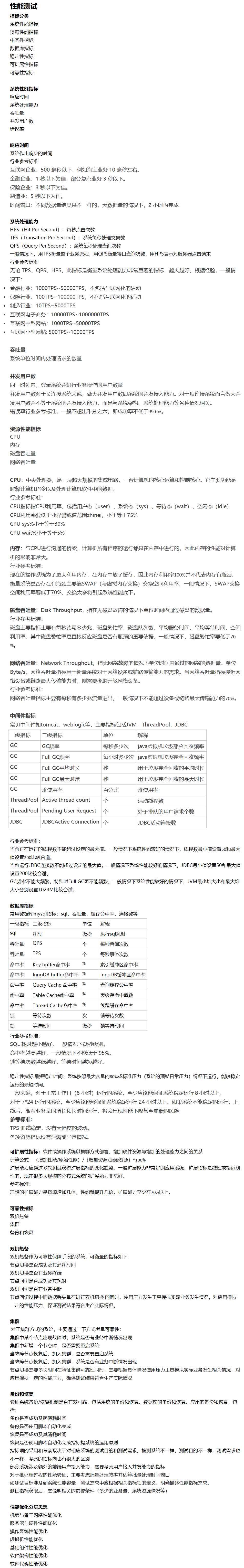 性能专业名词及解释