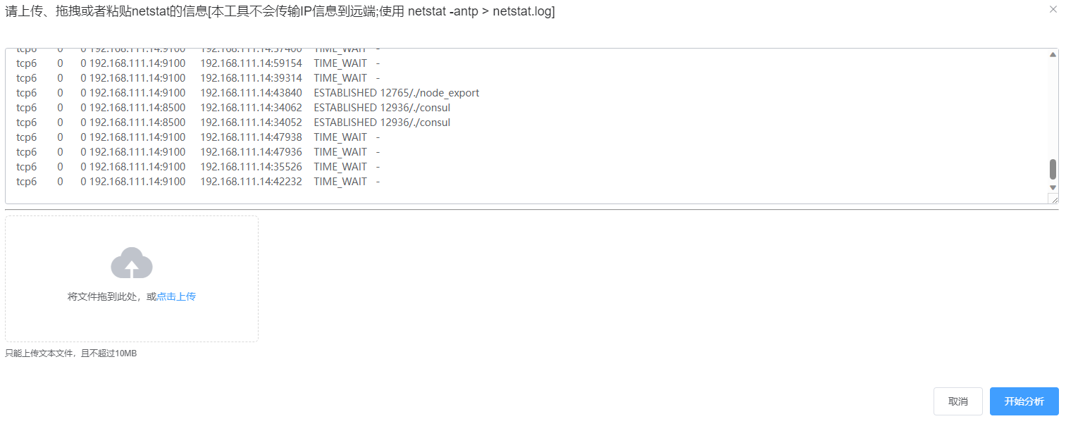 现在,我们提供了一种netstat的图形化的工具,只要运行nestat -antp > netstat.log