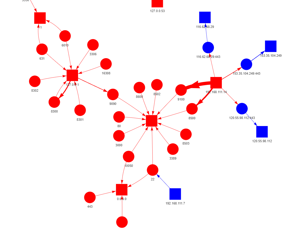 把netstat.log 丢到在线工具上进行分析,就可以显示对应的网络拓扑。分析过程完全依赖浏览器本地执行,不会有IP信息泄露的风险。