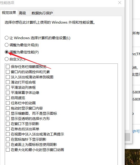 在系统高级设置中,将性能设置为最佳性能: 鼠标右键单击我的电脑-->属性-->高级系统设置-->设置: