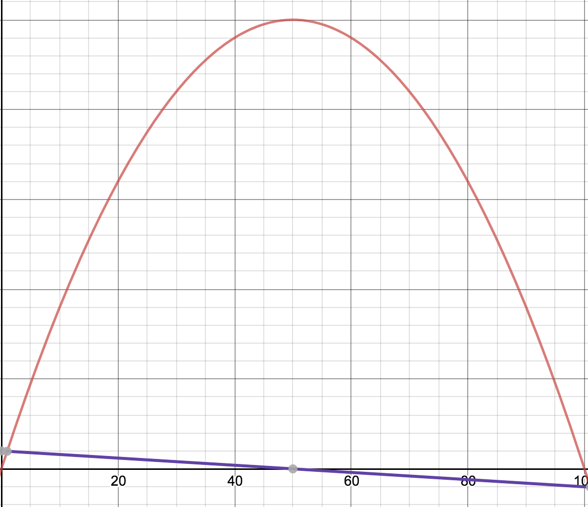 这表明如果存在全局最大值或最小值,则必须在长度= 50时发生。也就是说,如果矩形的长度存在最佳选择,则为50米。可能存在临界点既不是最小值也不是最大值,所以应该测试发现的临界点确实是最值。在微积分课程中,有相关的检验方法(比如二阶导数检验),现在用更简单的方法(类似梯度下降法)来解决该问题,比如在临界点长度= 50的左右两侧测试2个点。