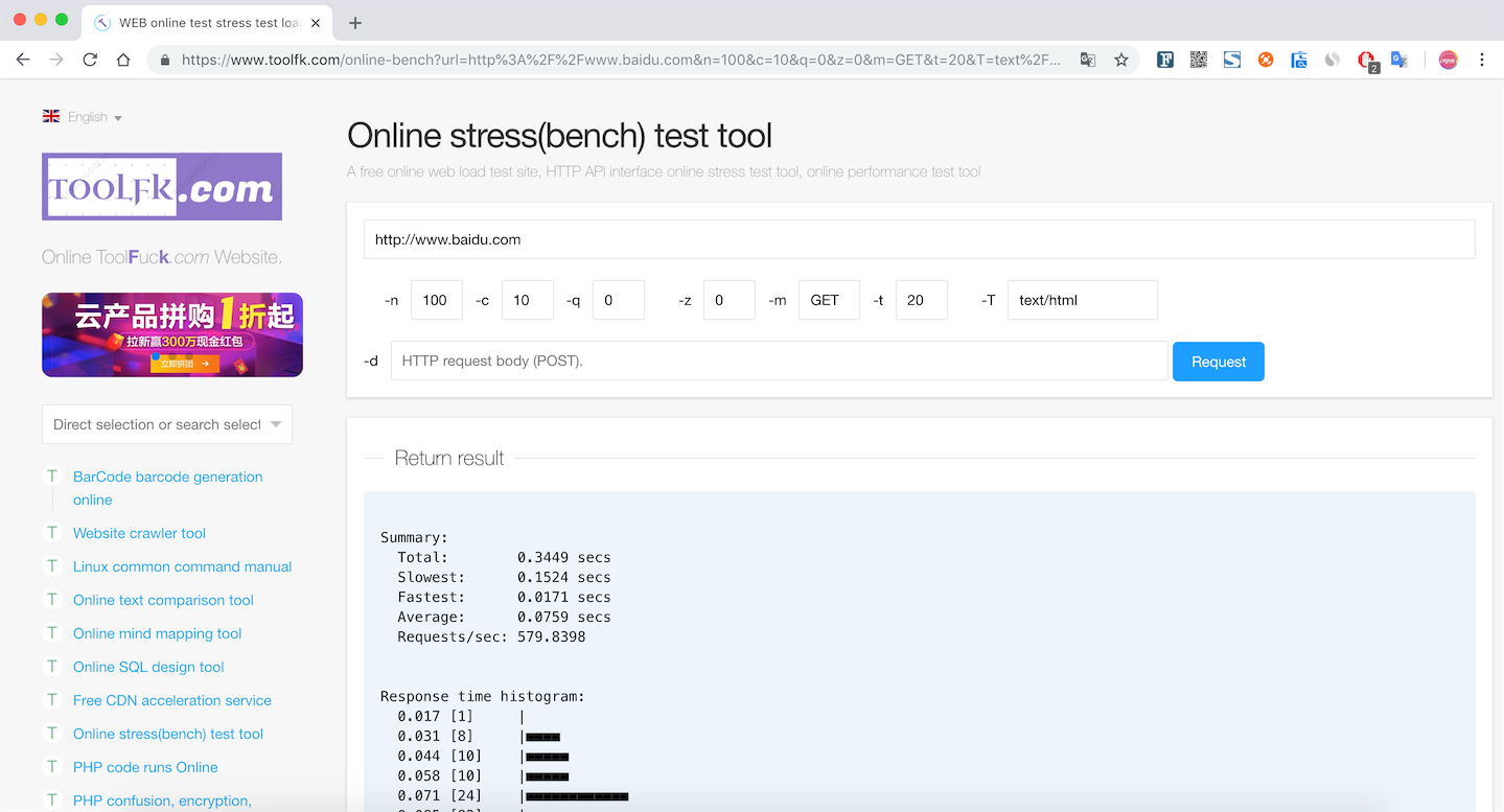 本工具[在线压力测试工具]依赖的代码库为 https://github.com/rakyll/hey