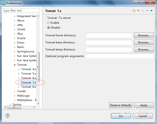 点击Tomcat,显示Tomcat设置窗口,如图(根据需要配置Tomcat的版本)