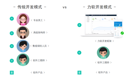 和高代码开发不同,低代码降低了开发过程的复杂性,能让具备不同经验水平的开发者通过可视化建模和拖拽组件的方式快速构建业务应用,减少在重复和基础开发工作上的时间成本。从人力方面看,低代码开发降低了应用搭建门槛,减轻对专业工程师的依赖,满足业务部门的个性化需求,降低人力成本,企业不需要为每个系统的调整分别建立昂贵的软件研发团队,有很强的灵活性和通用性。在后期运维上,低代码平台的迭代速度快,灵活性更高。